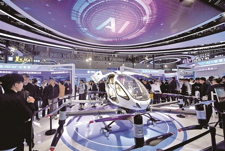 观众在河北省石家庄市举办的2025中国国际数字经济博览会上了解可载人飞行器。新华社发