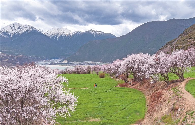 西藏林芝市米林市索松村桃花盛开。 新华社发